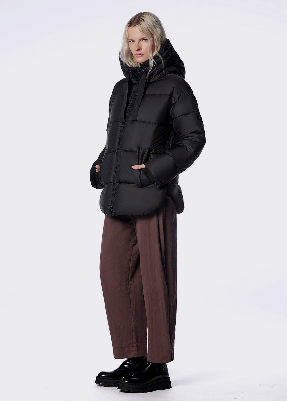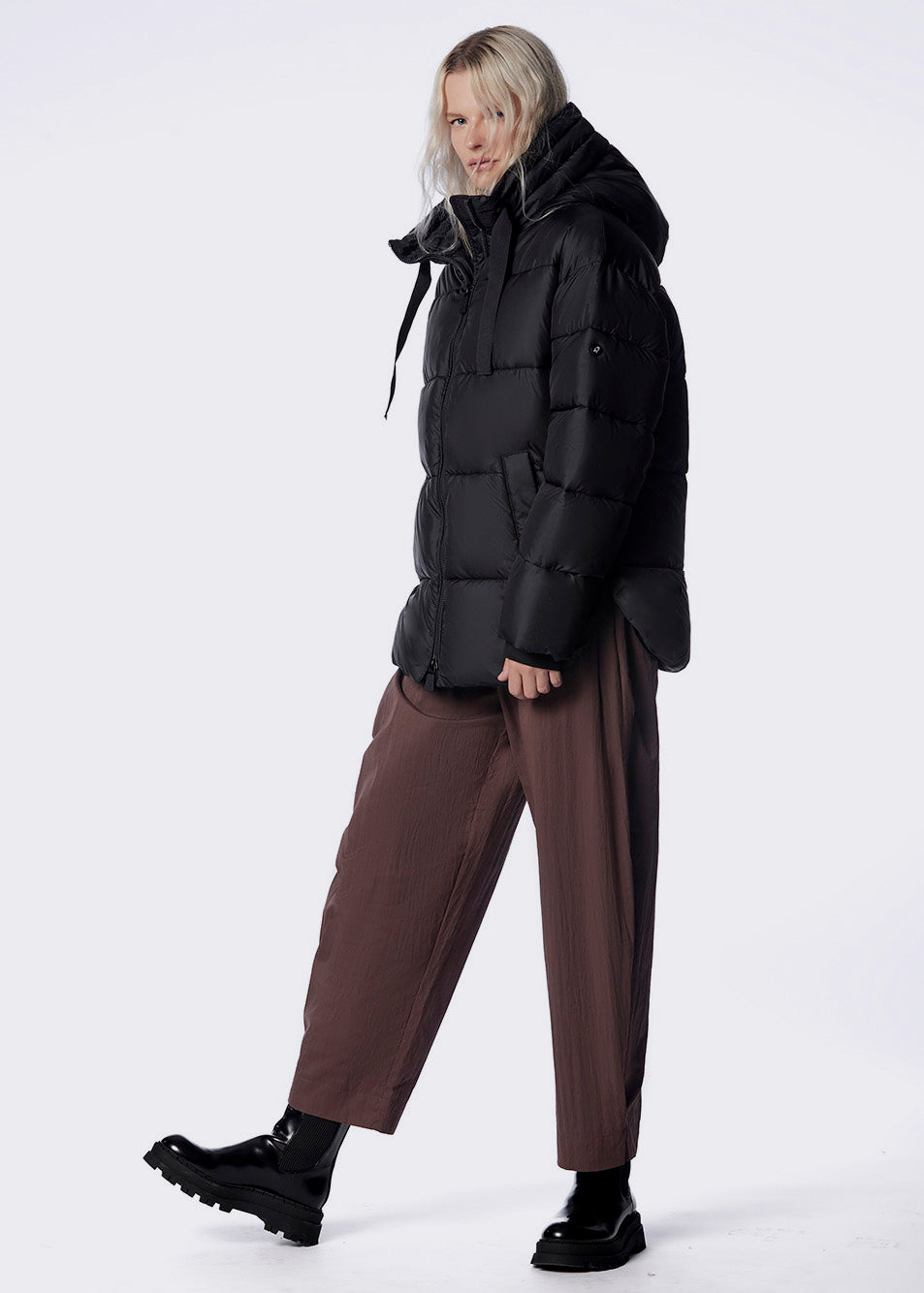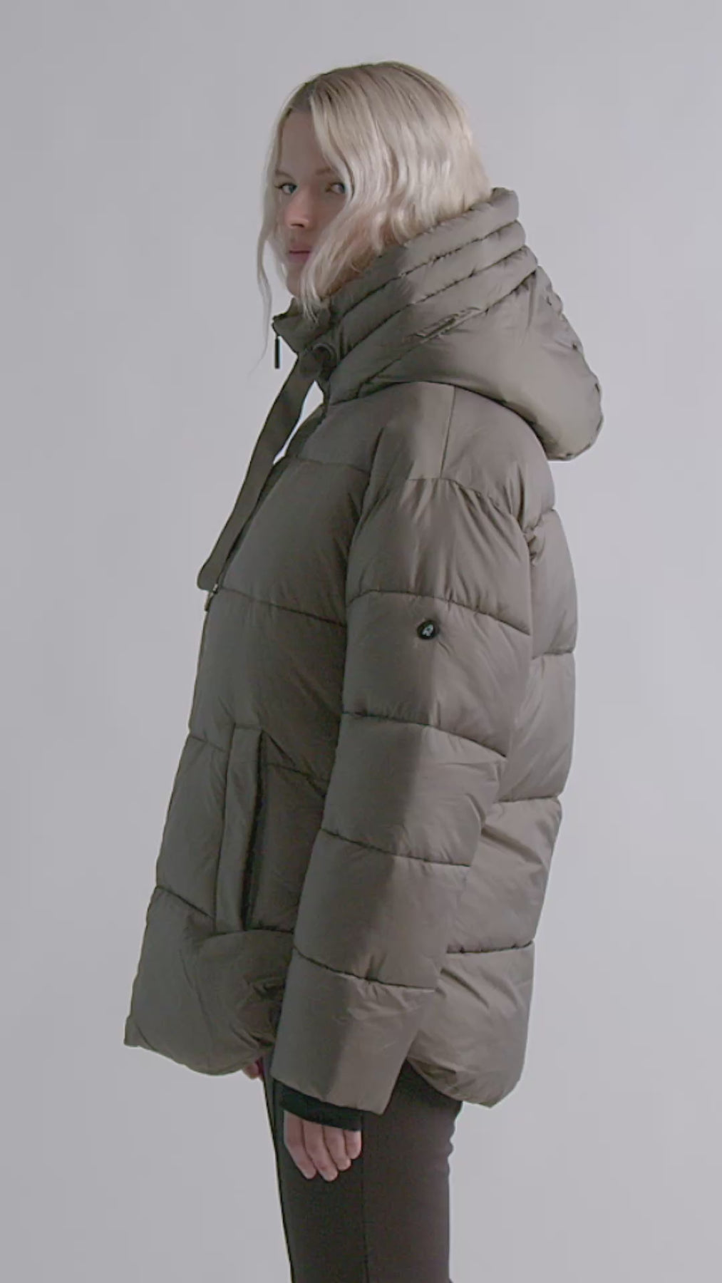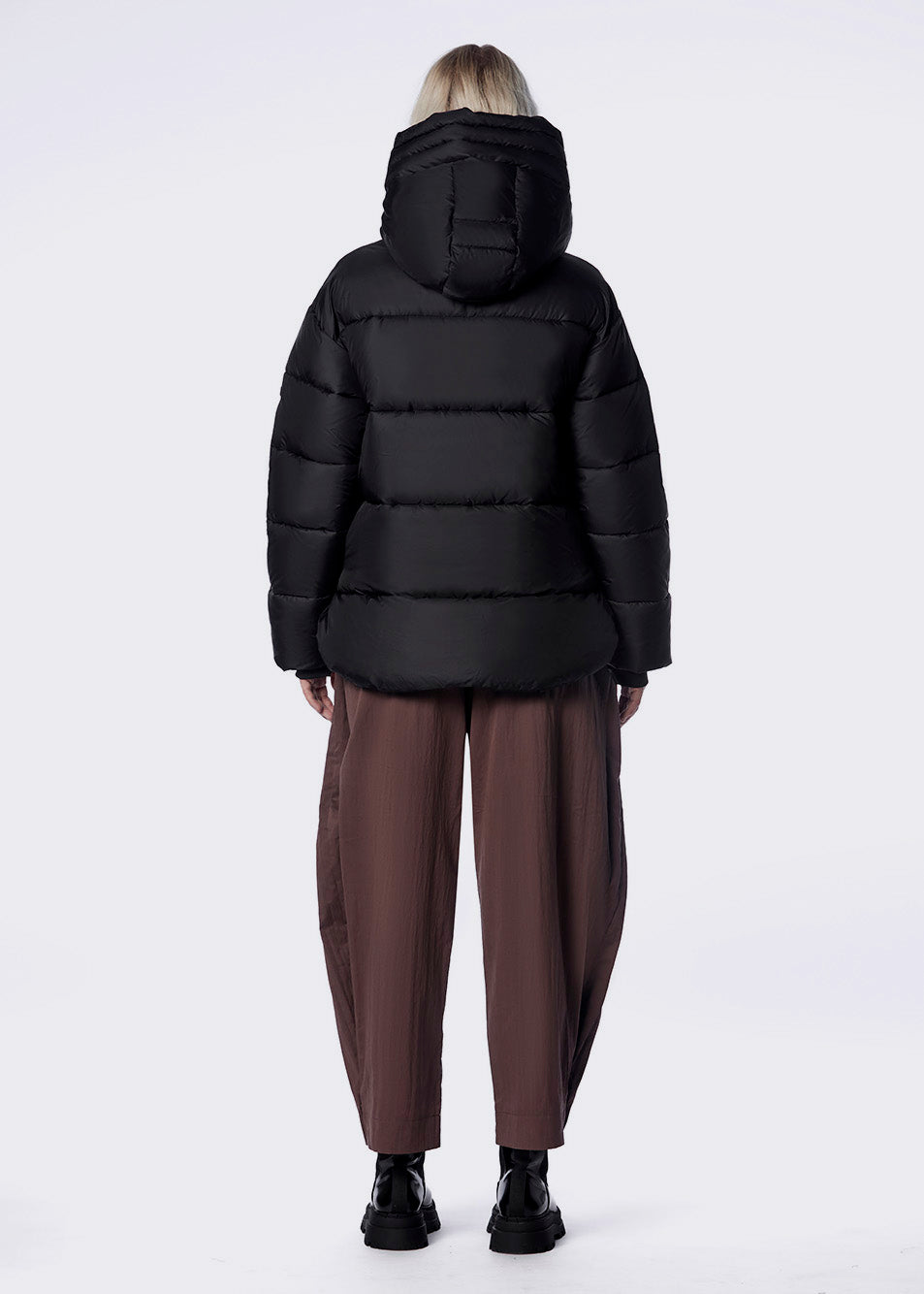 Manteau court au style décontracté, doté d’une coupe ample et d’un capuchon fixe.