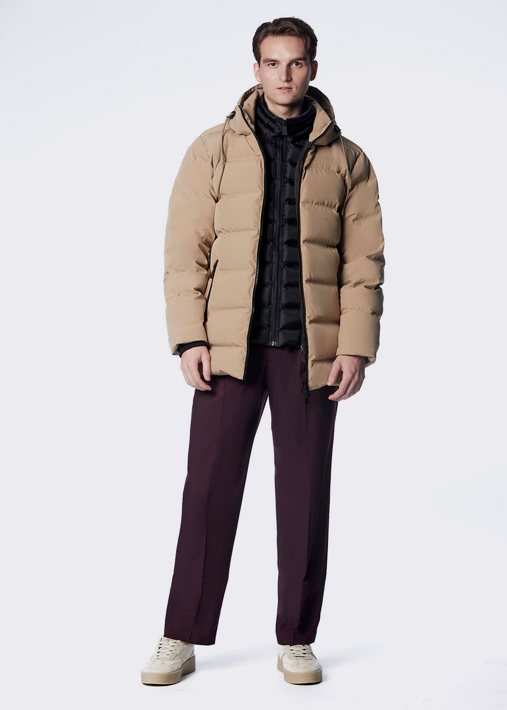 Winter down coat with detachable vest and hood. Designed to protect you during the hardest winter conditions, this coat features a two-way zipper, two side pockets, two interior pockets ans a elastic cord at the hem for better adjustment.