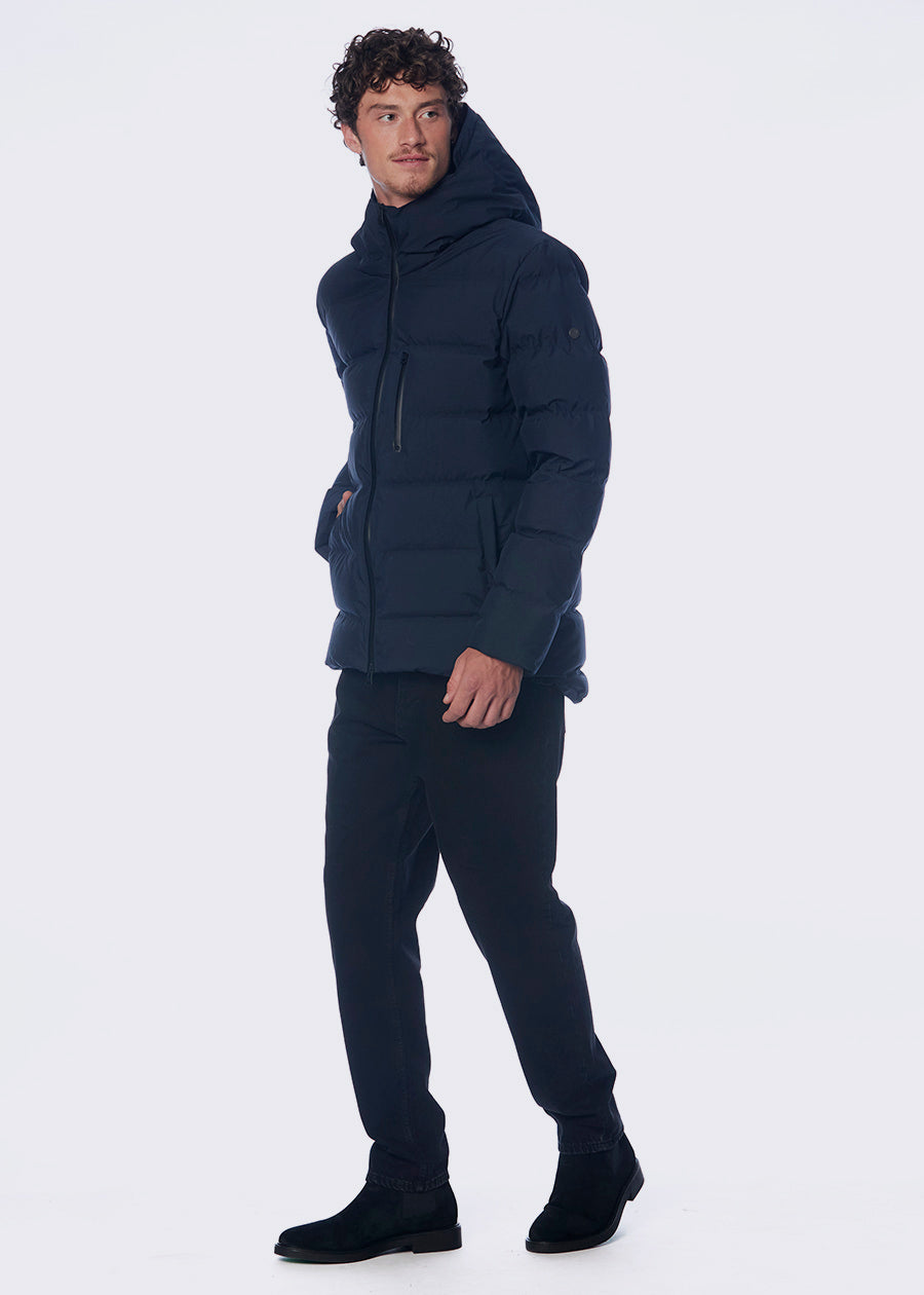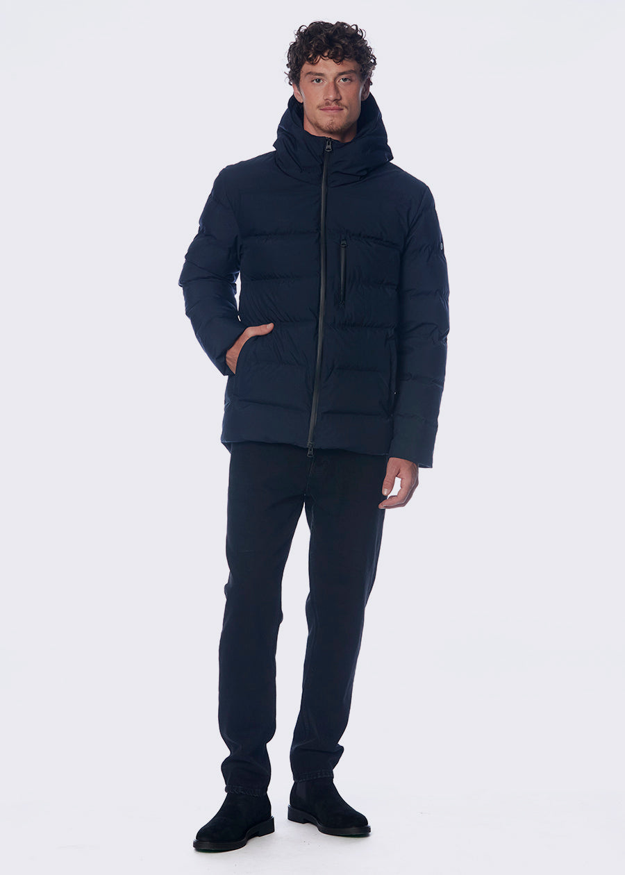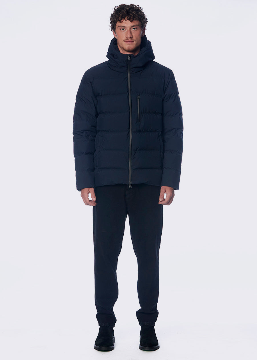 • The HAMBURG is a short quilted jacket with a 90/10 down insulation. It features a fixed, adjustable hood. A comfortable and modern style that is a must-have for this winter.