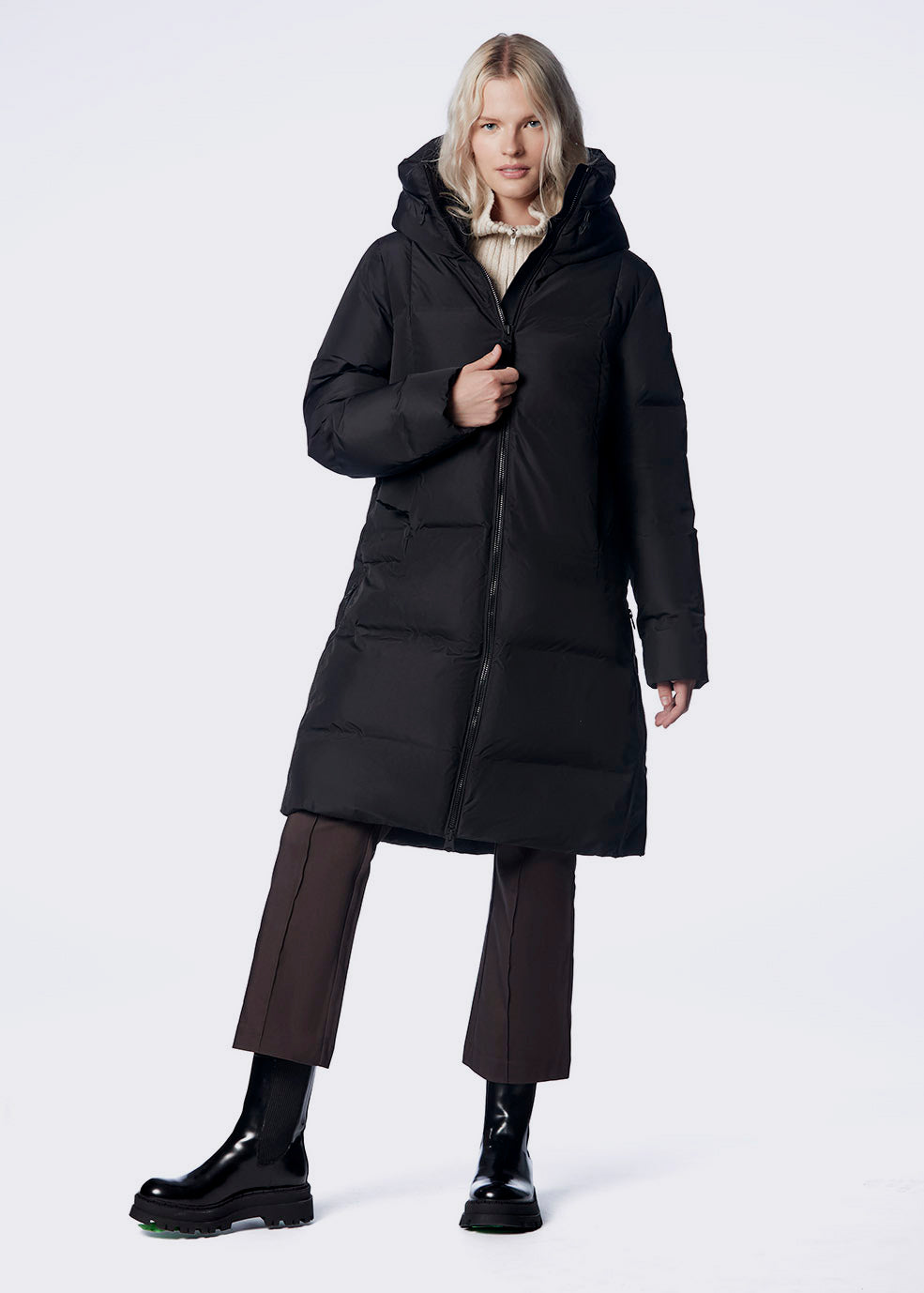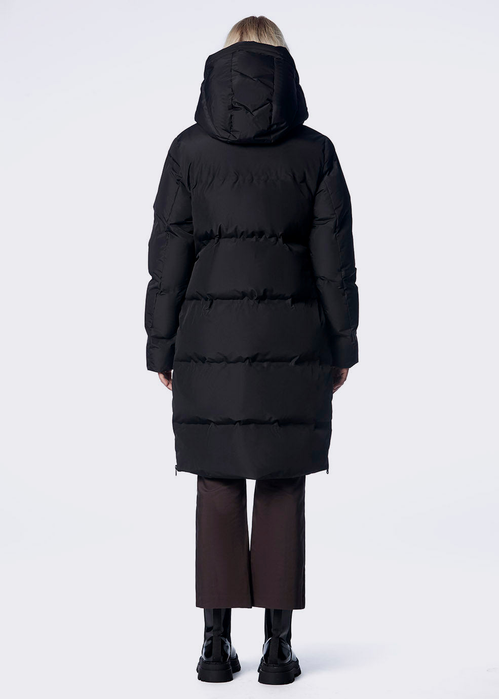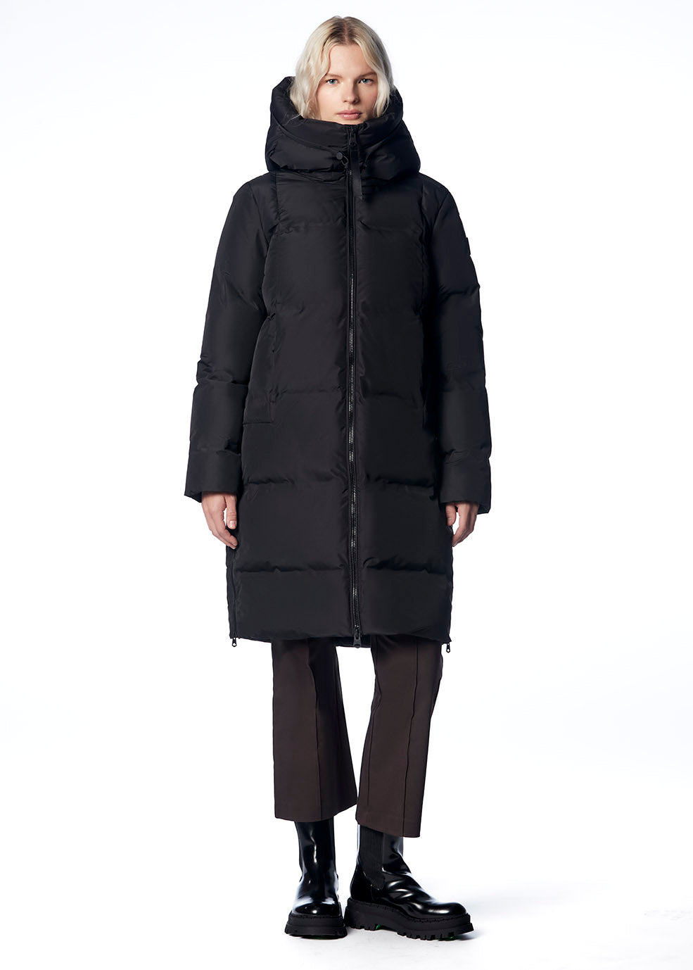 RIVER is an eco-responsible knee-length coat. This model plays with the volumes of an oversized cut and a large hood. This quilted coat is perfect for an urban and trendy look thanks to its style and functionality.