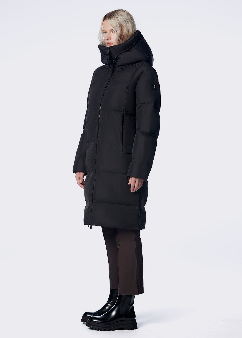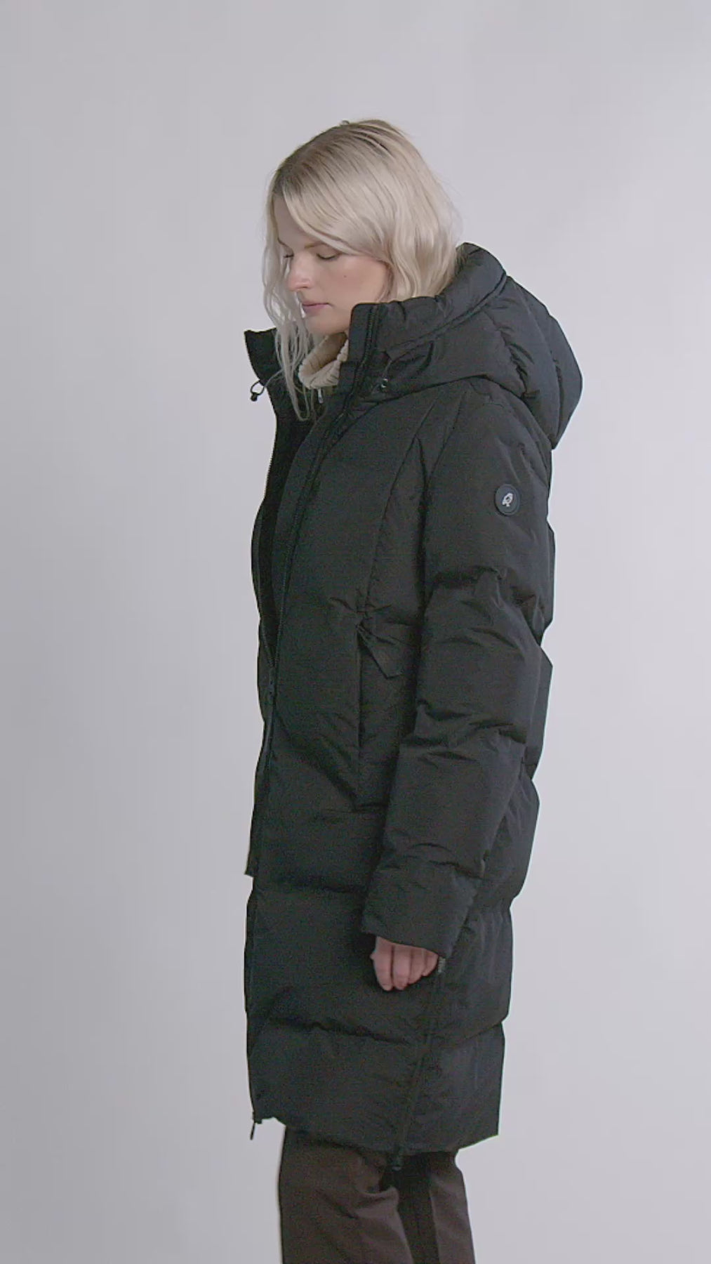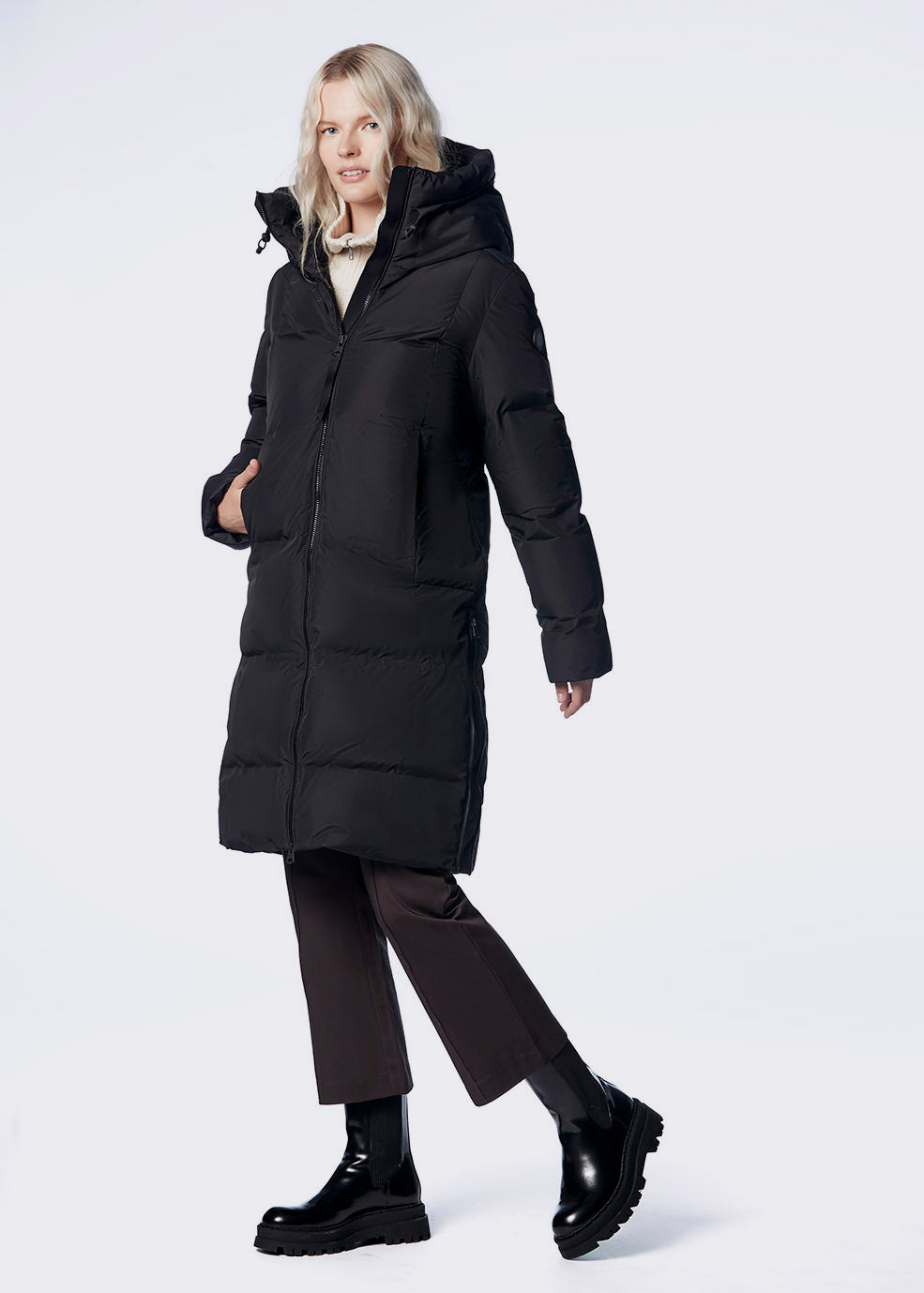 RIVER is an eco-responsible knee-length coat. This model plays with the volumes of an oversized cut and a large hood. This quilted coat is perfect for an urban and trendy look thanks to its style and functionality.